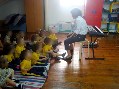 Parece-me que a aula de música está muito activa. O Simão já veio com alguma personagens da história de Portugal. A mais vezes referida foi a D. Carlota Joaquina.